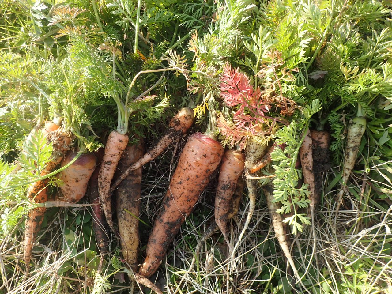 麦、にんじん、大根、ベニバナ、小松菜、タマネギ、大豆、ししとう、トマトを露地で栽培してみたり。